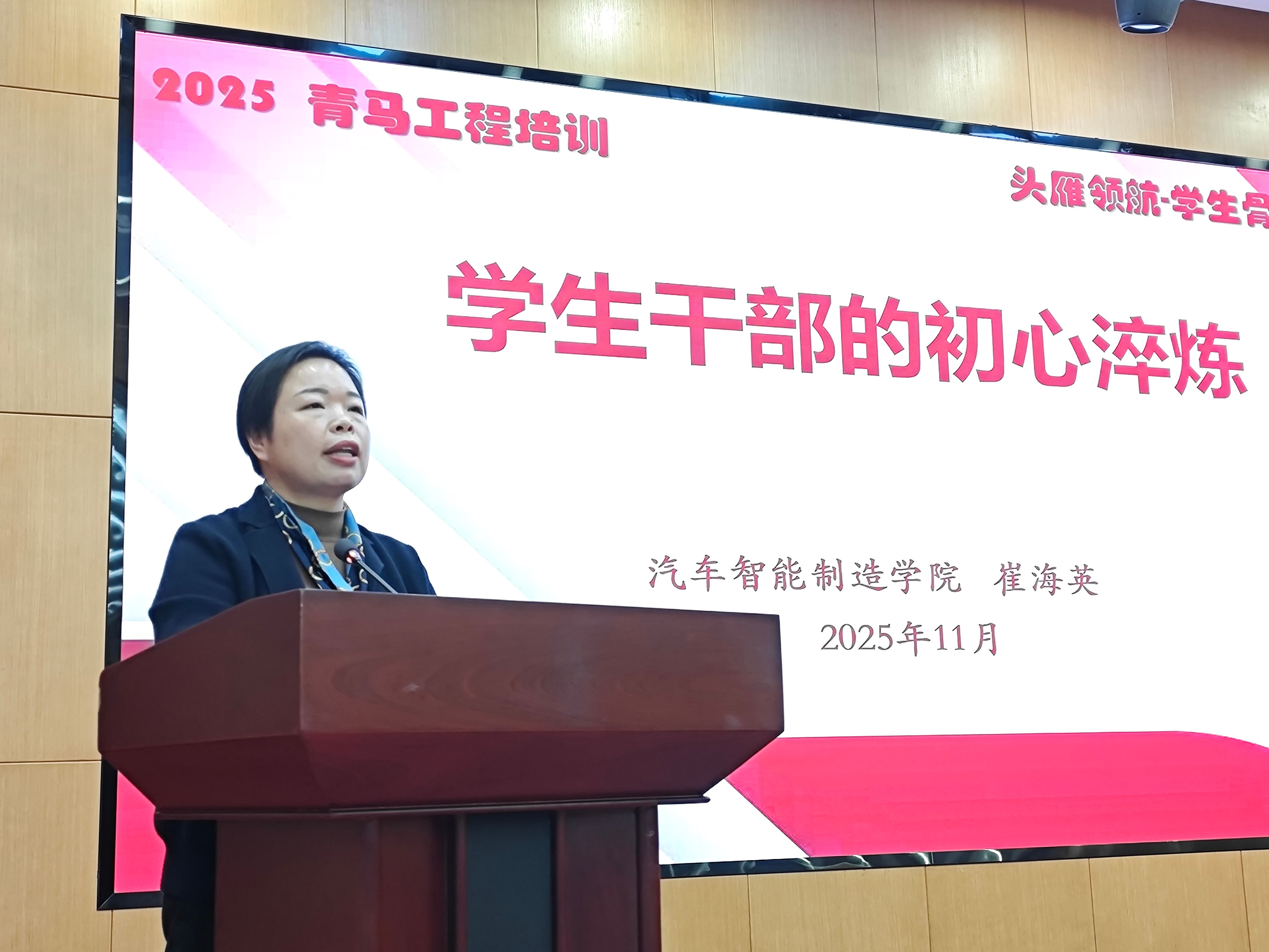11月9日,汽车智能制造学院在产教四楼报告厅举办2025年学生组织成立大会暨“青马工程”培训班开班仪式,学院党委书记崔海英、副书记马晓涛、全体辅导员及学生组织全体成员参加活动。