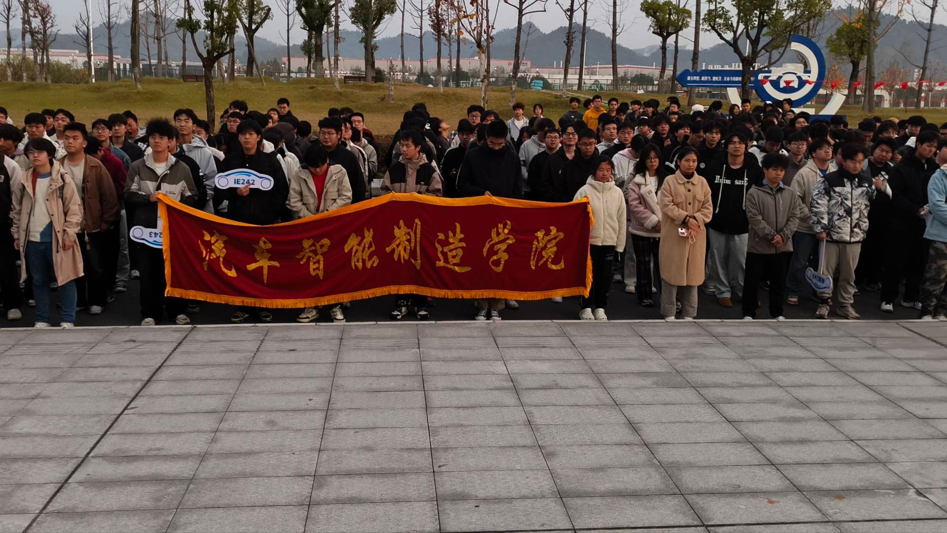 11月10日,汽车智能制造学院在北校区第八综合教学楼前举行“迎评估凝心聚力 强学风砥砺前行”升旗仪式,学院党委副书记、全体辅导员和2023、2024级学生参加活动。
