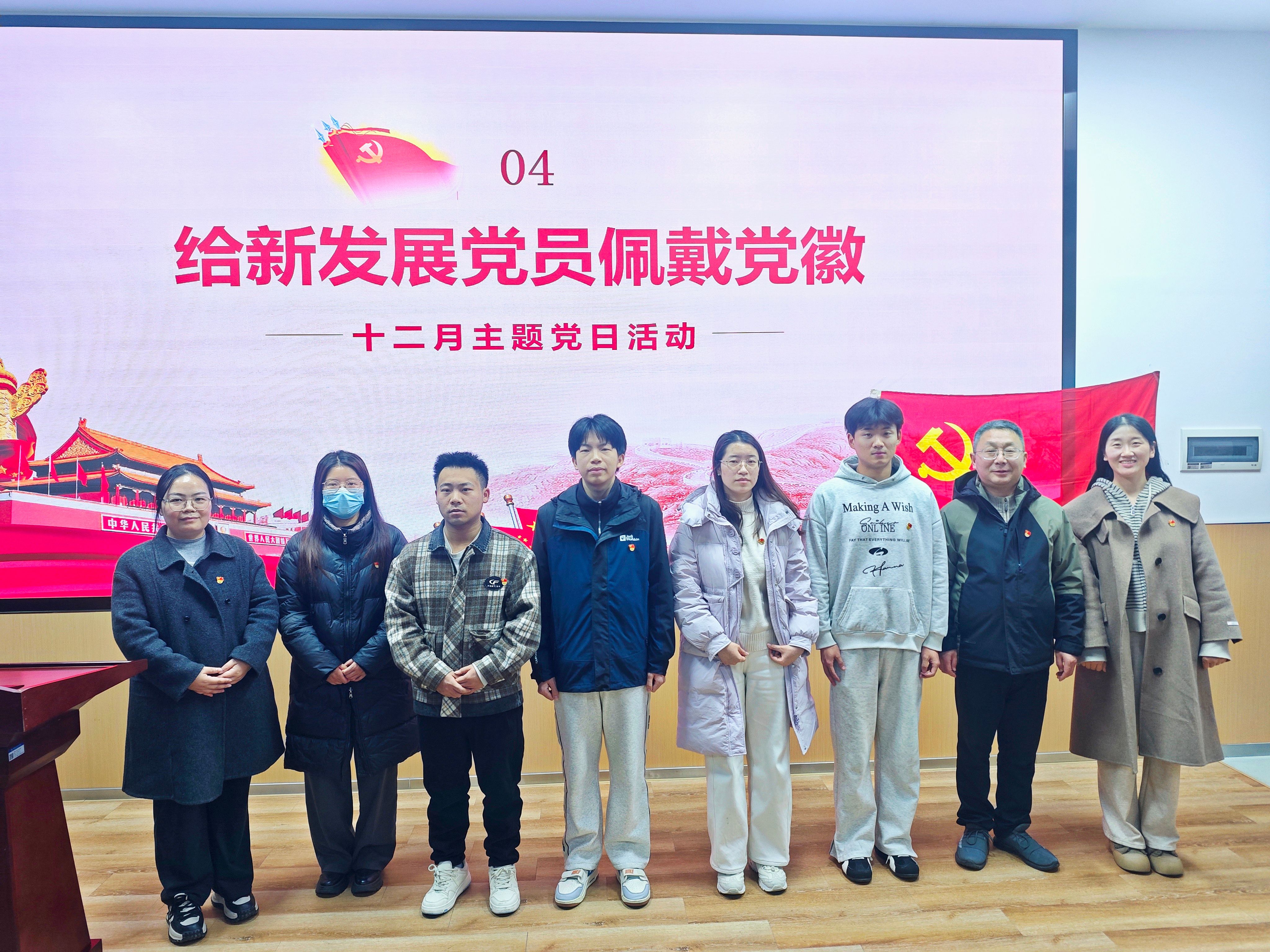 随后,新一批发展党员代表李成萍同志发言。她从学业科研、社会实践、服务群众三方面提出未来个人规划,并代表全体新党员承诺:胸怀“国之大者”,练就过硬本领,让青春在智能汽车强国建设中绽放绚丽之花。在鲜艳的党旗前,老师、学生党员共同为新发展党员佩戴党徽。熠熠党徽映初心,激励新党员亮身份、作表率、当先锋。佩戴仪式结束后,全体党员起立,右拳高举,重温入党誓词。铿锵誓言响彻会场,再次唤醒党员责任与使命。