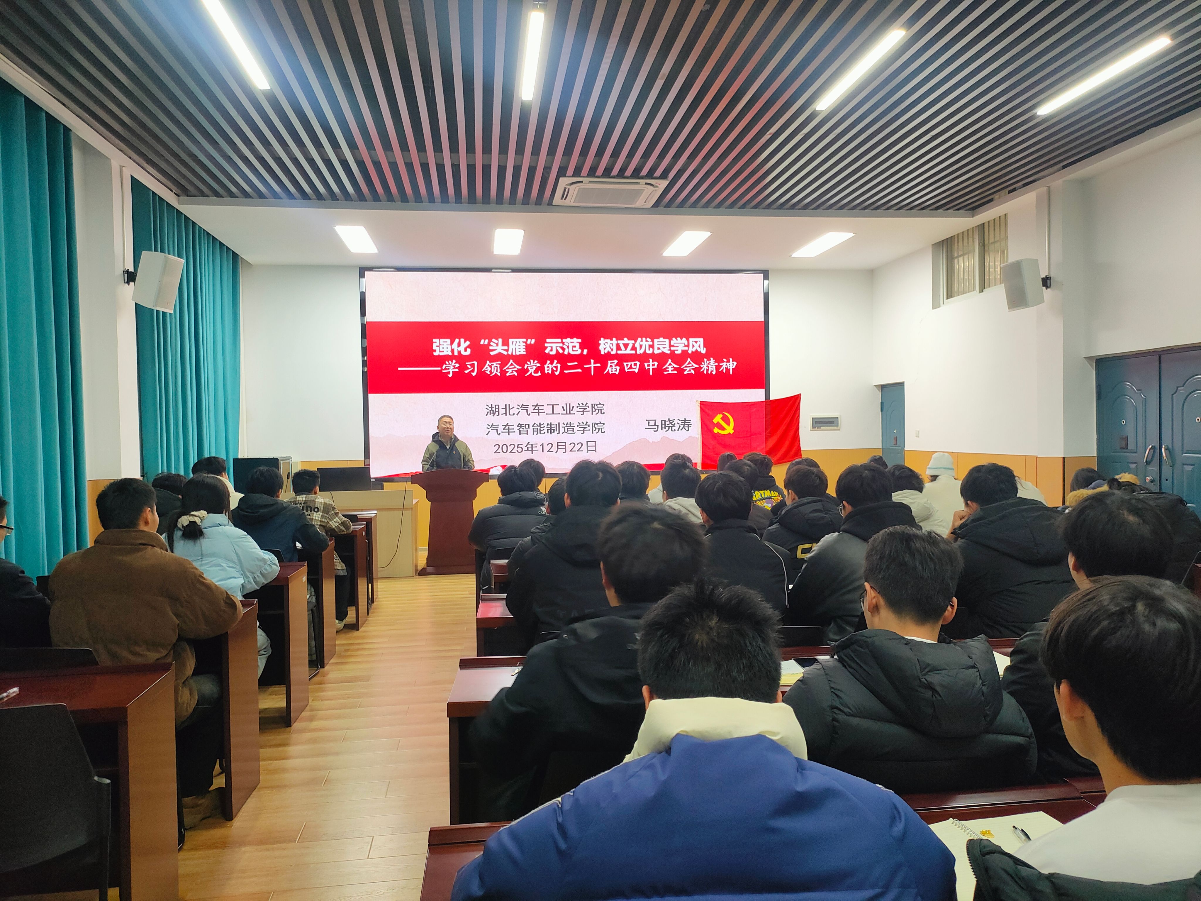 马晓涛同志以“强化‘头雁’示范,树立优良学风”为题讲授专题党课。他结合党的二十届四中全会精神,提出每一名党员都要成为优良学风的一面旗帜、每一个宿舍都要成为勤学互助的堡垒;希望全体党员以“头雁”引领行动,以优良学风保障效果,确保全会精神落地生根。