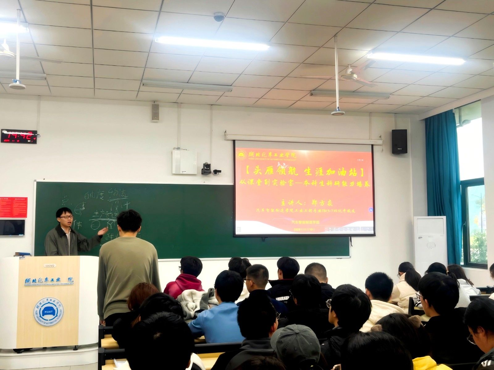 本网讯(文 董盼盼、陈君妍/图 纪彦彬)“哪些学科竞赛能让我们在考研和就业过程中更有竞争力?”“如何判断一个研究想法是否真正具有创新性?”为助力学生提升竞赛意识和科研能力,11月10日,汽车智能制造学院在8107举办“头雁领航·生涯加油站”之“从课堂到实验室——本科生科研能力培养”讲座,本次讲座特别邀请武汉理工大学汽车工程学院郑方焱副教授(汽车智能制造学院T813-7班校友)主讲。